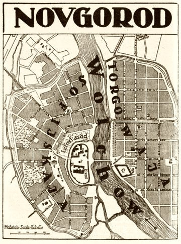 Novgorod (Новгород, Velikiy Novgorod) city Map, 1928 by Waldin